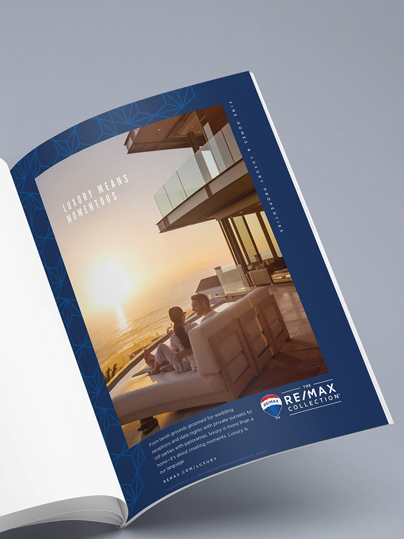 The Solution: Leveraged the RE/MAX color palette and brand guidelines, incorporating photography that highlighted the three sub-brands—Luxury, Commercial, and Residential real estate—to ensure visual consistency and brand clarity.